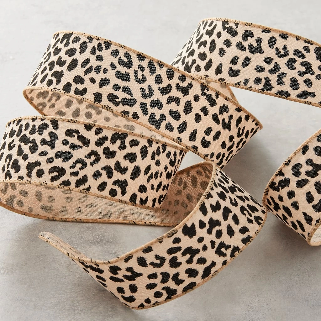 Perfect for embellishing décor items, gift wrap, treats, gift baskets and more! This faux linen ribbon has a fun cheetah pattern.