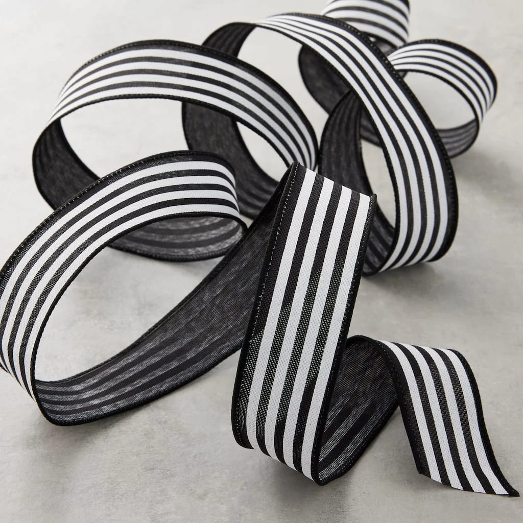 Add this wired ribbon to your gift wrapping and DIY décor projects. This faux linen with a striped pattern will add a lovely texture to your finished decorative piece.