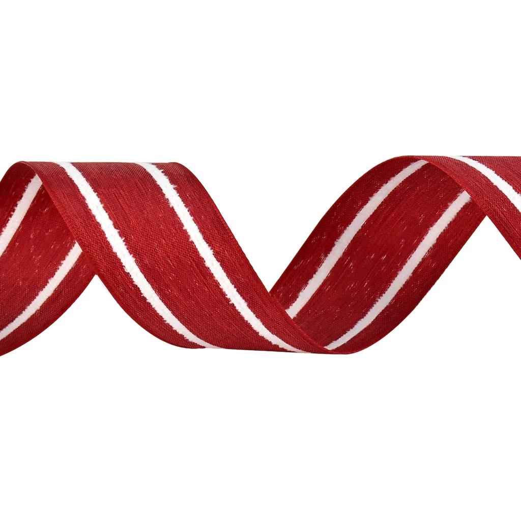 Give your gifts and crafts a lovely rustic touch with this wired woven ribbon with red and white stripes from Celebrate It. Use to craft festive wreaths and garlands, add bows and other embellishments to apparel projects or put the finishing touch on a present for someone special.