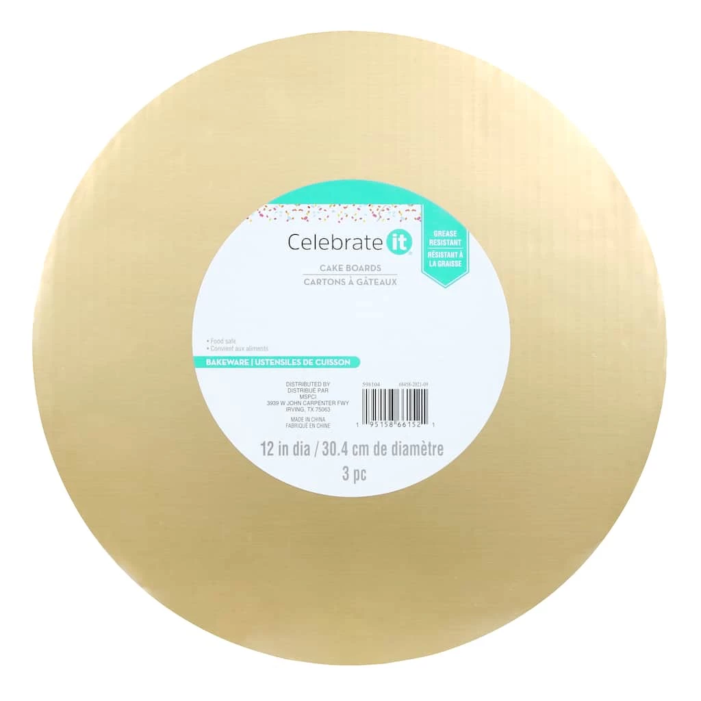 Impress guests when you display your decadent desserts on these cake boards from Celebrate It. The metallic gold finish is sure to add sophistication to any table setting.