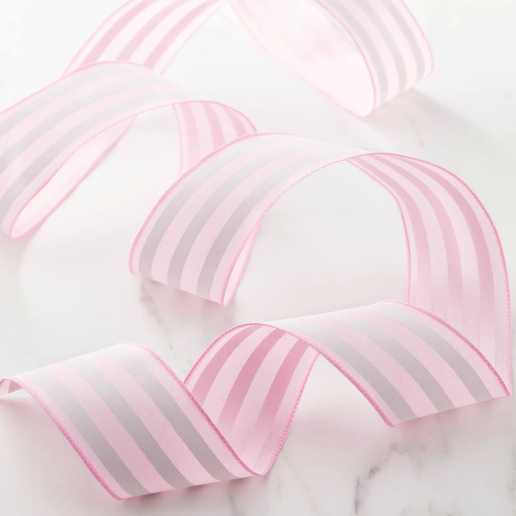 Perfect for embellishing décor items, gift wrap, treats, gift baskets and more! This faux linen ribbon has a pink and white striped pattern.