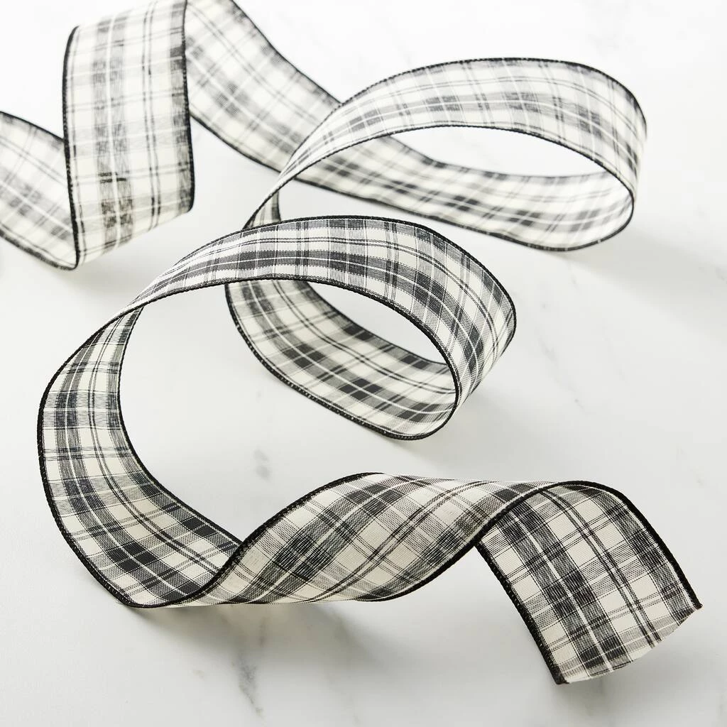 Wrap your floral vases with this delightful plaid ribbon by Celebrate It for a warm touch. Minimalist and charming, this black and ivory ribbon is perfect to complement your craft and fabric projects.