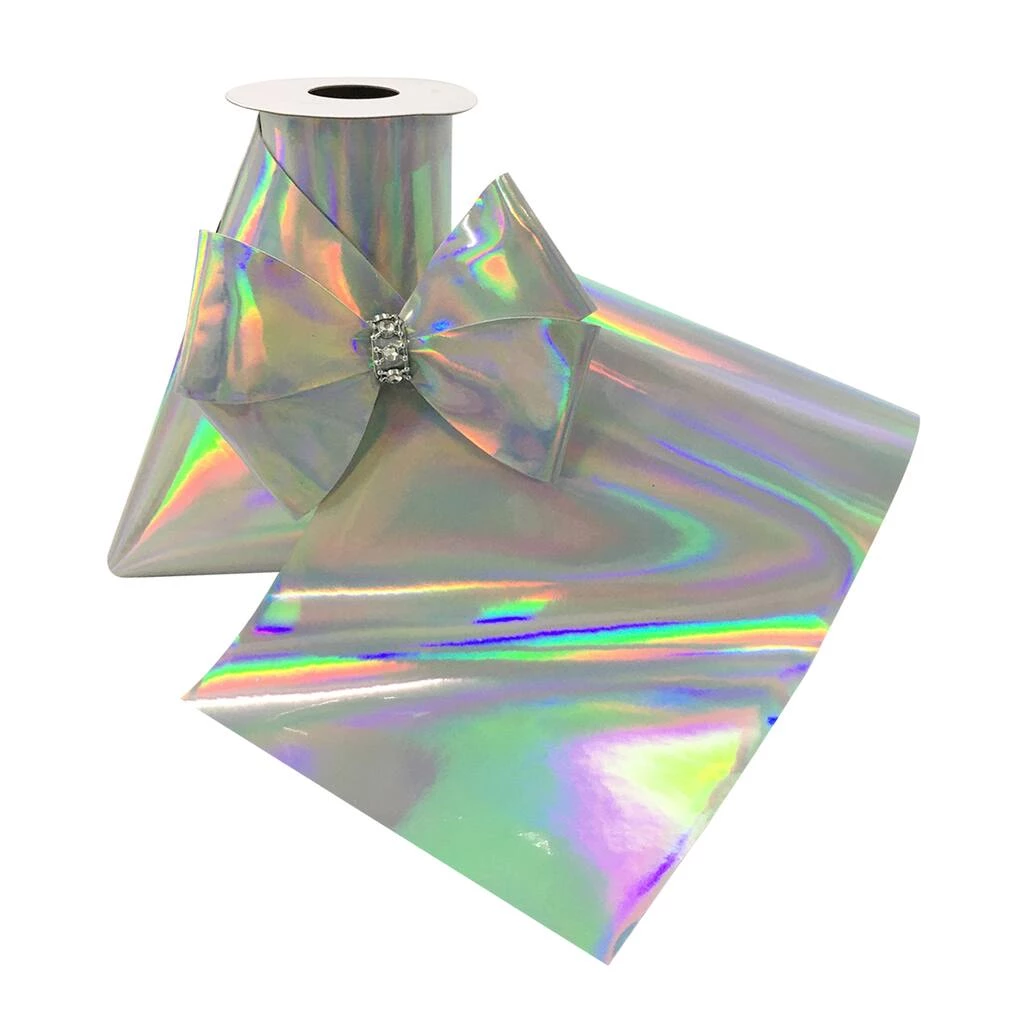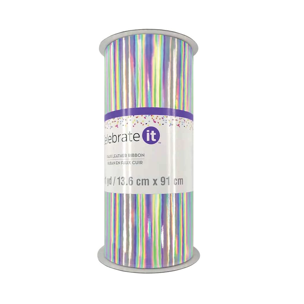 Add this faux leather ribbon to your DIY craft projects and home décor. Featuring a holographic white iridescent finish, this ribbon will make your project stand out.