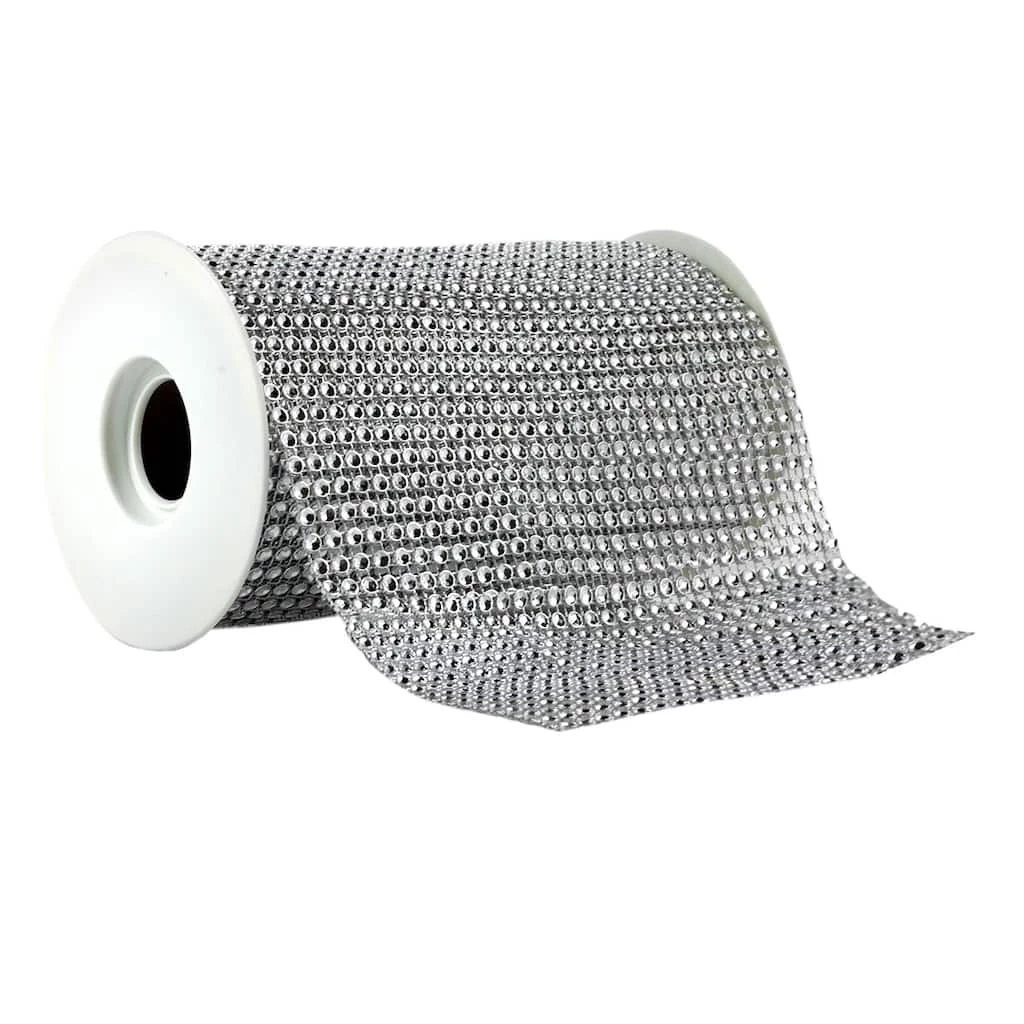 Add a touch of glamour to special occasions and home décor projects with this sparkly ribbon wrap. Designed with a rhinestone-like finish, it’s lightweight, bendable, and can be cut to size. This extra wide ribbon makes a great wrap for vases, wedding bouquets, votive holders, favor boxes, and presents.
