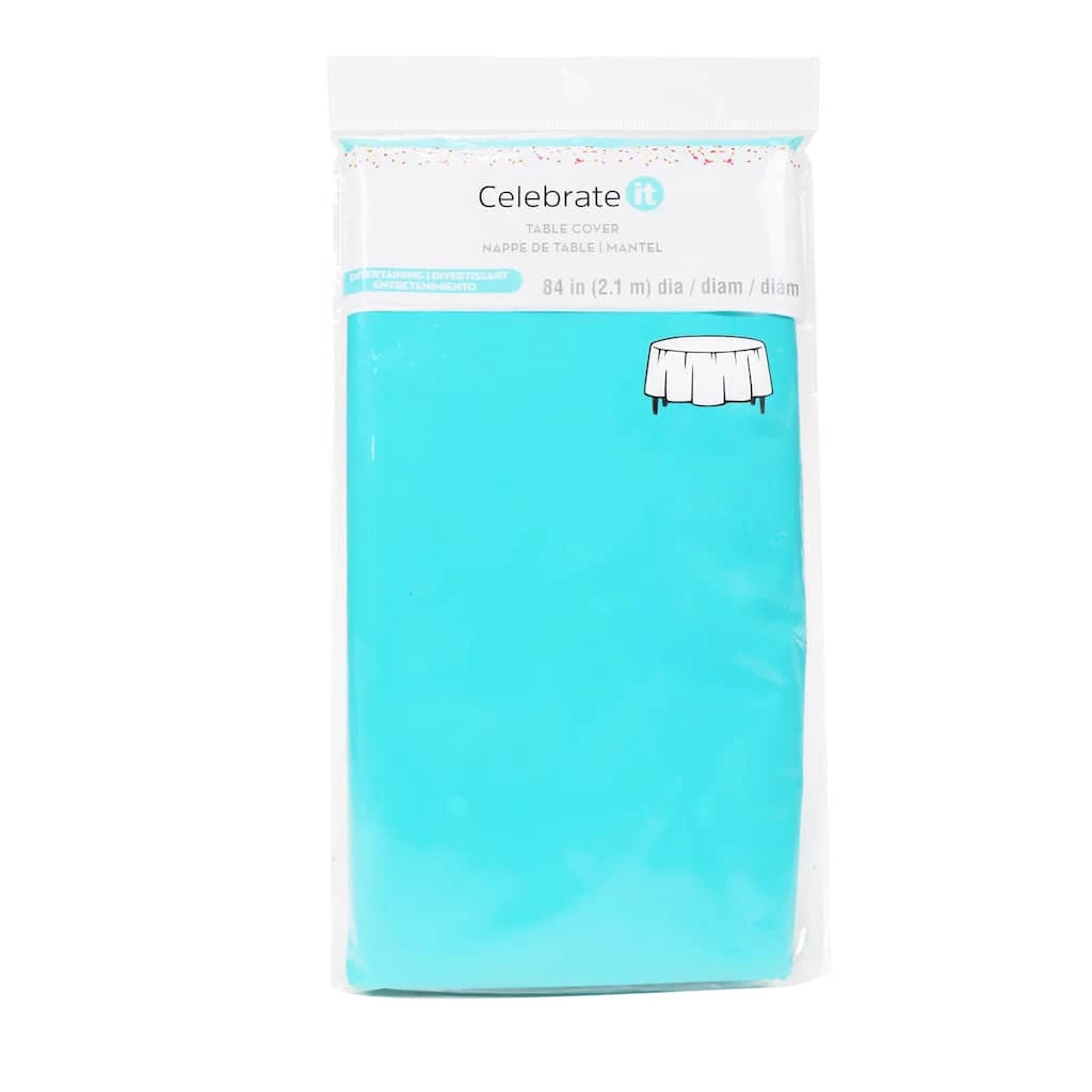 Before you arrange the plates and cutlery on your dinner party table, lay these teal covers by Celebrate It on it. You can use any large, fresh floral arrangement as a centerpiece for your round table.