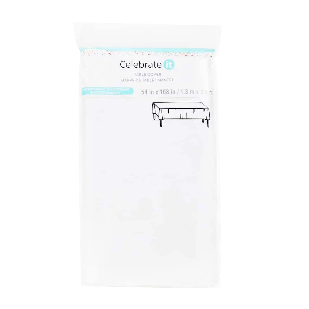 Simple and versatile, this white cover by Celebrate It is perfect to lay on your living room dining table. Vibrant floral arrangements and printed placemats will beautifully complement this cover.
