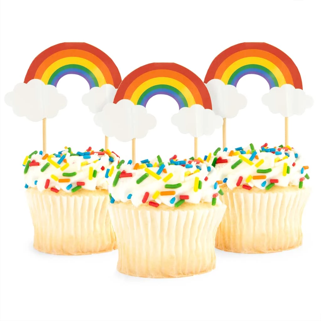 Colorful and cute, these rainbow treat toppers are perfect for embellishing spring-themed cupcakes. Your baked goods will stand out on any dessert table when decorated with vibrant rainbow accents.