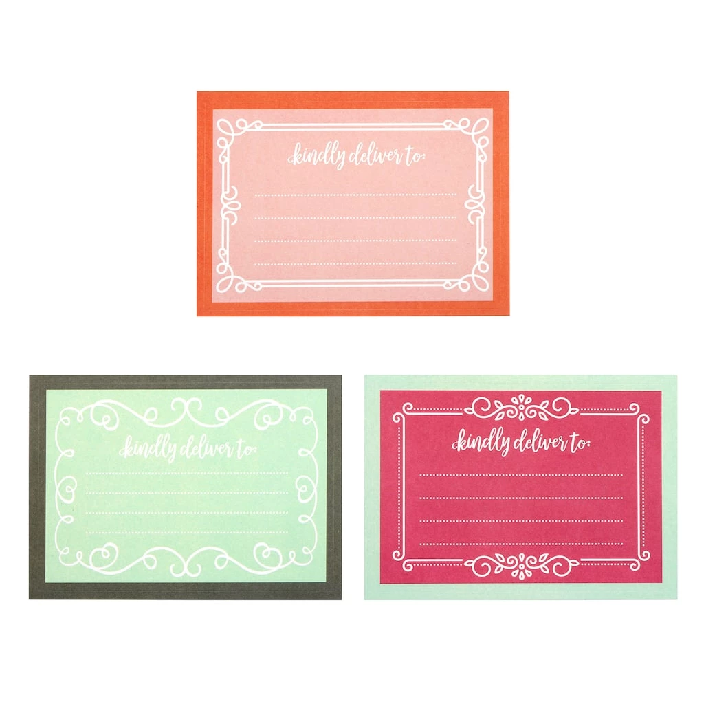 Make your delivery packaging extra special with this set of bright address labels. They feature decorative borders and are perfect for birthdays, weddings, and other special occasions.