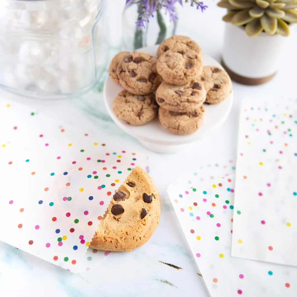 These cute favor bags are perfect for filling with candies, chocolates, pencils and other favors at your next birthday party. Its pretty polka dot print adds to its charm. Place your favor bags in a cute basket, and let people grab them on their way out.