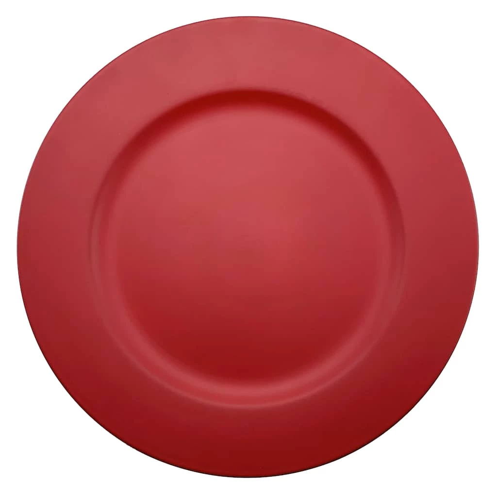 These red chargers are perfect for lending your Christmas table a festive touch. Pair them with holiday napkins, plates, and flatware to complete the look.