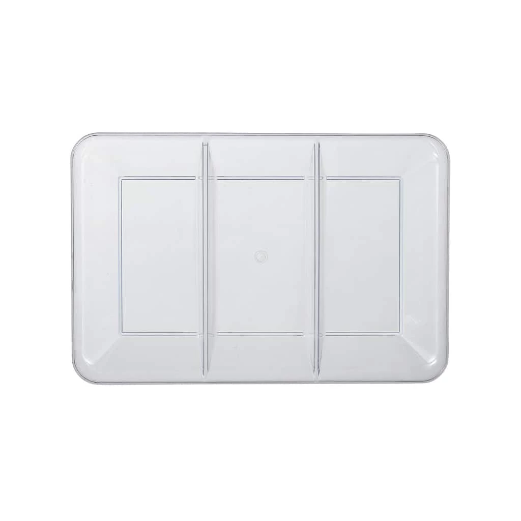 Use this clear tray to serve delectable food to your guests on any special occasion. With three compartments, this tray makes it easy to serve three different starters at the same time.