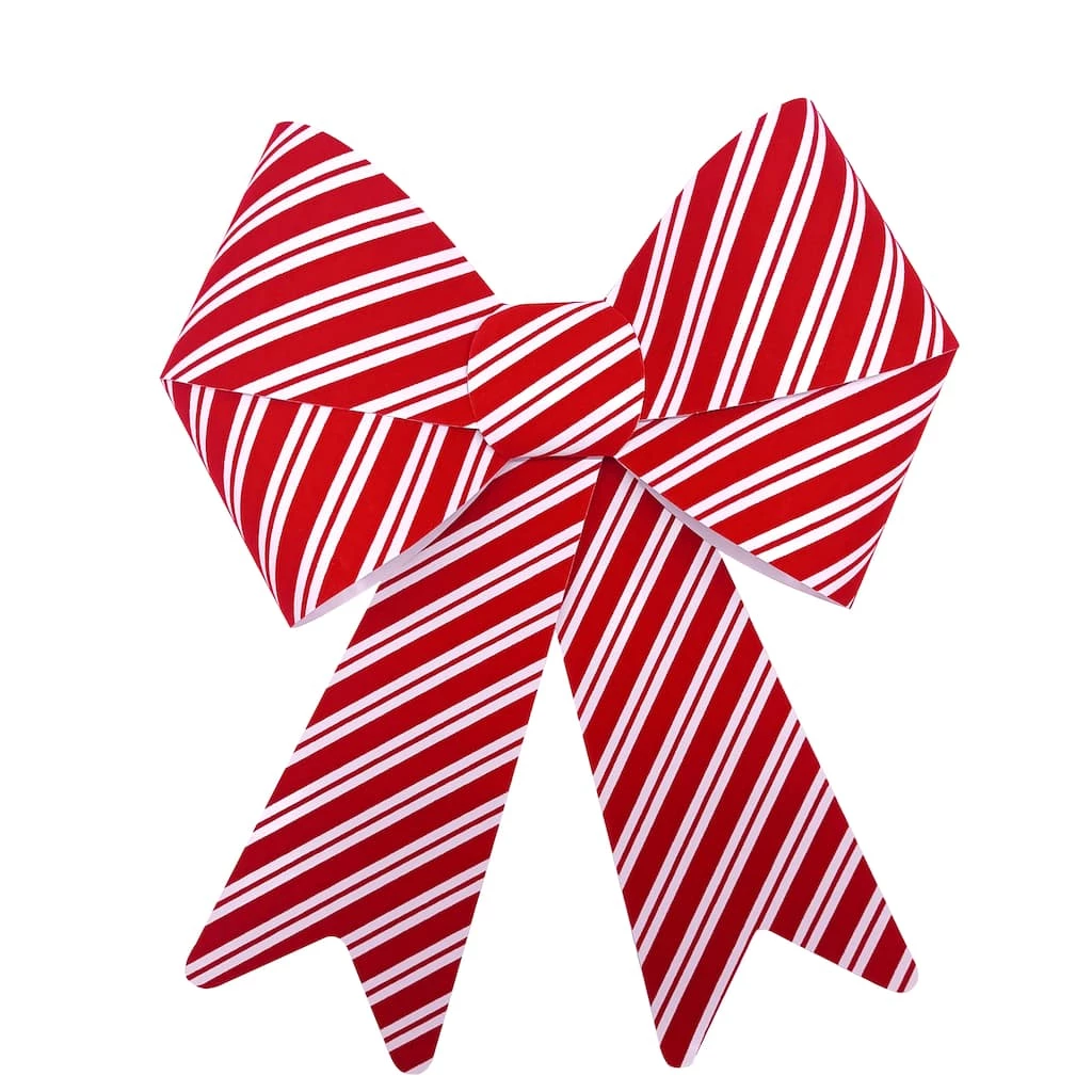 Give your holiday crafts a traditional glow with this velvet candy cane bow from Celebrate It. Use as is or add to festive garlands and wreaths, embellish floral arrangements, hang on trees and more!