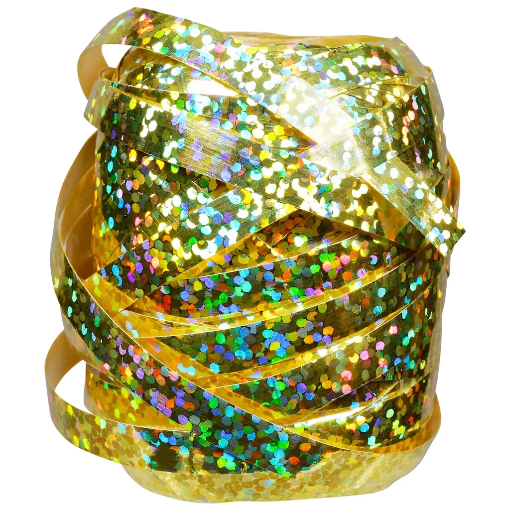 Add a touch of merriment and cheer to your handmade invites, cards, bouquets and more with this ribbon by Celebrate It. Featuring a flashy holographic finish, this ribbon is perfect for creating bows to adorn gift baskets or for wrapping up treat bags for kids.
