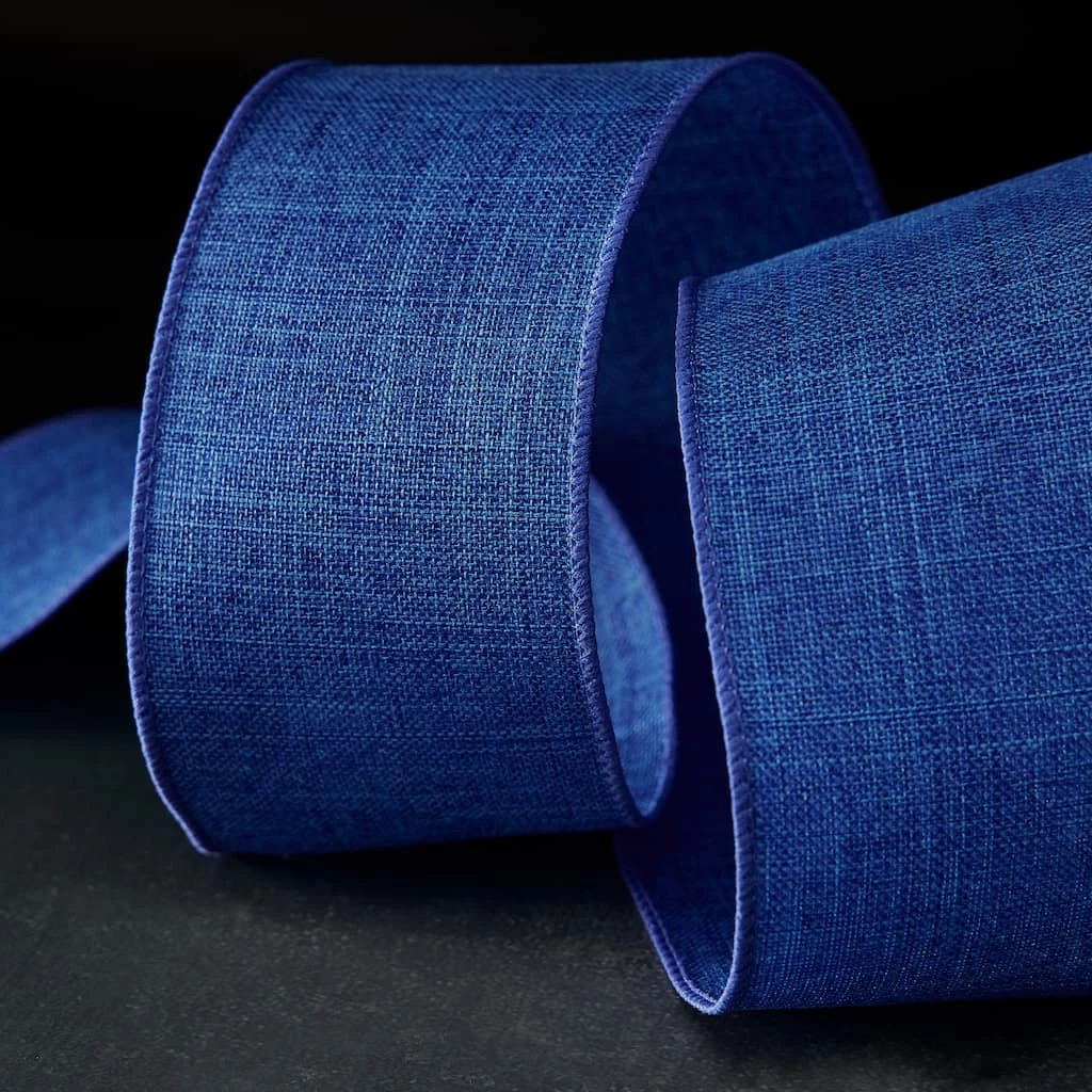 Perfect for embellishing décor items, gift wrap, treats, gift baskets and more! This faux linen ribbon has a beautiful royal blue color.