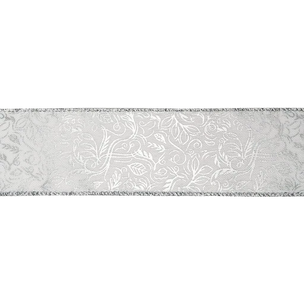 Give your Christmas gifts and craft projects a lovely bit of sparkle and shine with this silver foil faux linen ribbon from Celebrate It. Use to embellish ornaments, pair with lights and greenery to create festive garlands and wreaths, dress up floral arrangements, put the finishing touch on presents and more!