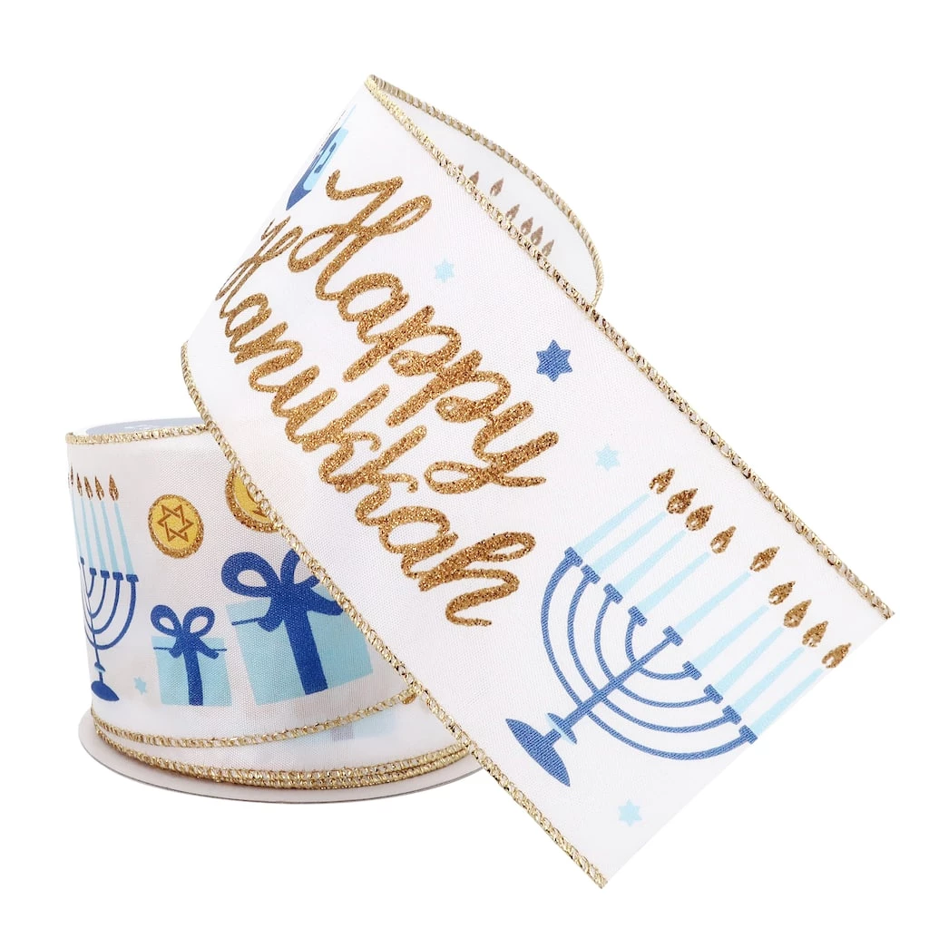 Give your Hanukkah gifts and craft projects a lovely bit of sparkle and shine with this taffeta candles ribbon from Celebrate It. Use to embellish ornaments, pair with lights and greenery to create festive garlands and wreaths, dress up floral arrangements, put the finishing touch on presents and more!