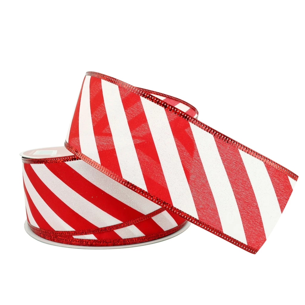 Give your Christmas gifts and craft projects a lovely bit of holiday charm with this wired red and white taffeta ribbon with slanted peppermint stripes from Celebrate It. Use to embellish ornaments, pair with lights and greenery to create festive garlands and wreaths, dress up floral arrangements, put the finishing touch on presents and more!