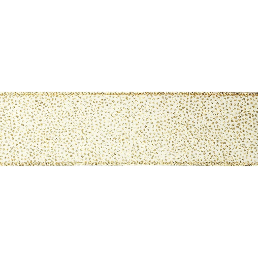 Give your Christmas gifts and craft projects a lovely bit of sparkle and shine with this wired taffeta ribbon with a glittery gold finish from Celebrate It. Use to embellish ornaments, pair with lights and greenery to create festive garlands and wreaths, dress up floral arrangements, put the finishing touch on presents and more!