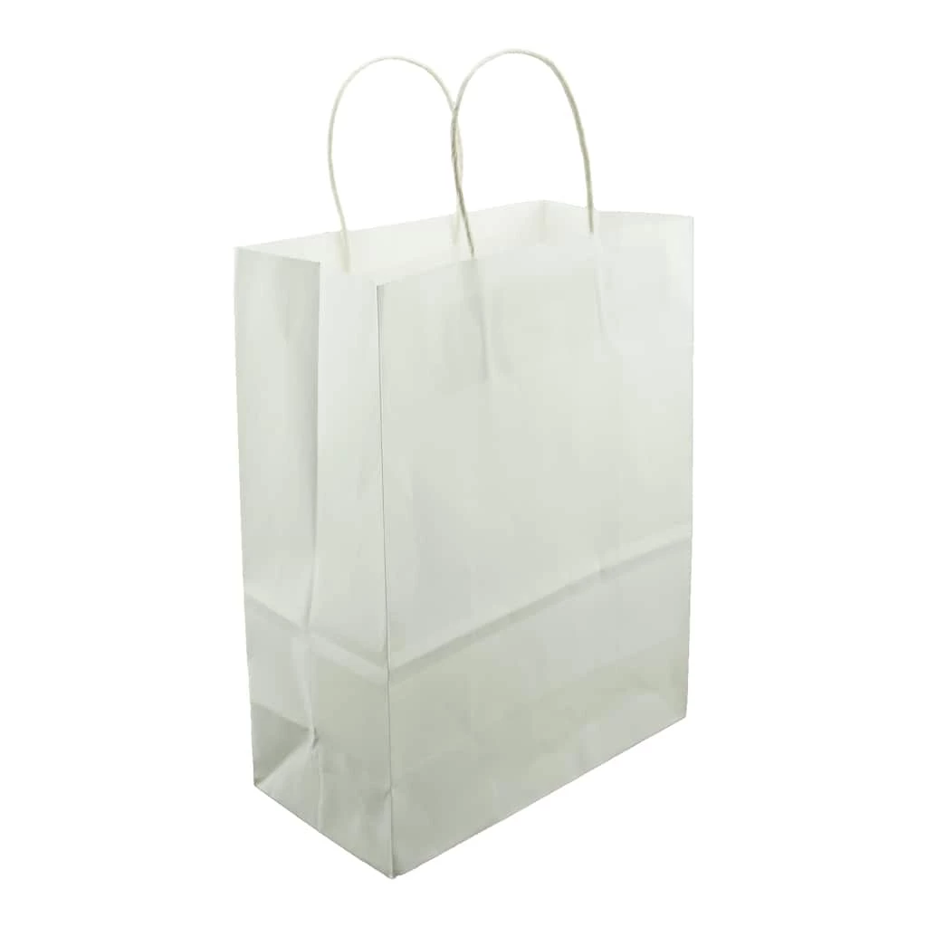 Use this sturdy bag, made with heavy-duty kraft paper, to quickly and easily pack your gifts, accessories and treats. Add your creative touch to this white bag using ribbon, stickers and more!