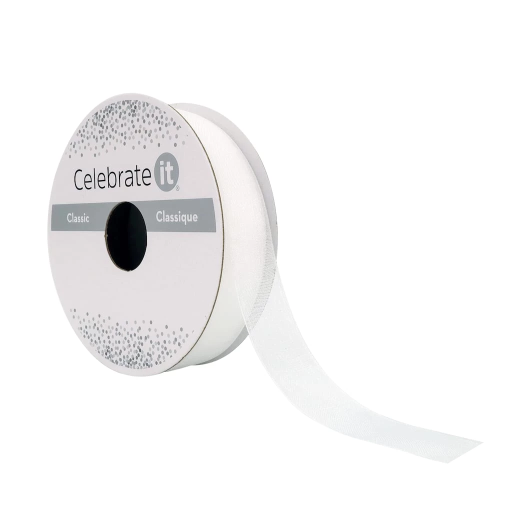 Give your gifts and crafts a fun touch of charm with this white sheer ribbon from Celebrate It. Use to craft seasonal wreaths and garlands, add bows and other embellishments to apparel projects or put the finishing touch on a present for someone special.