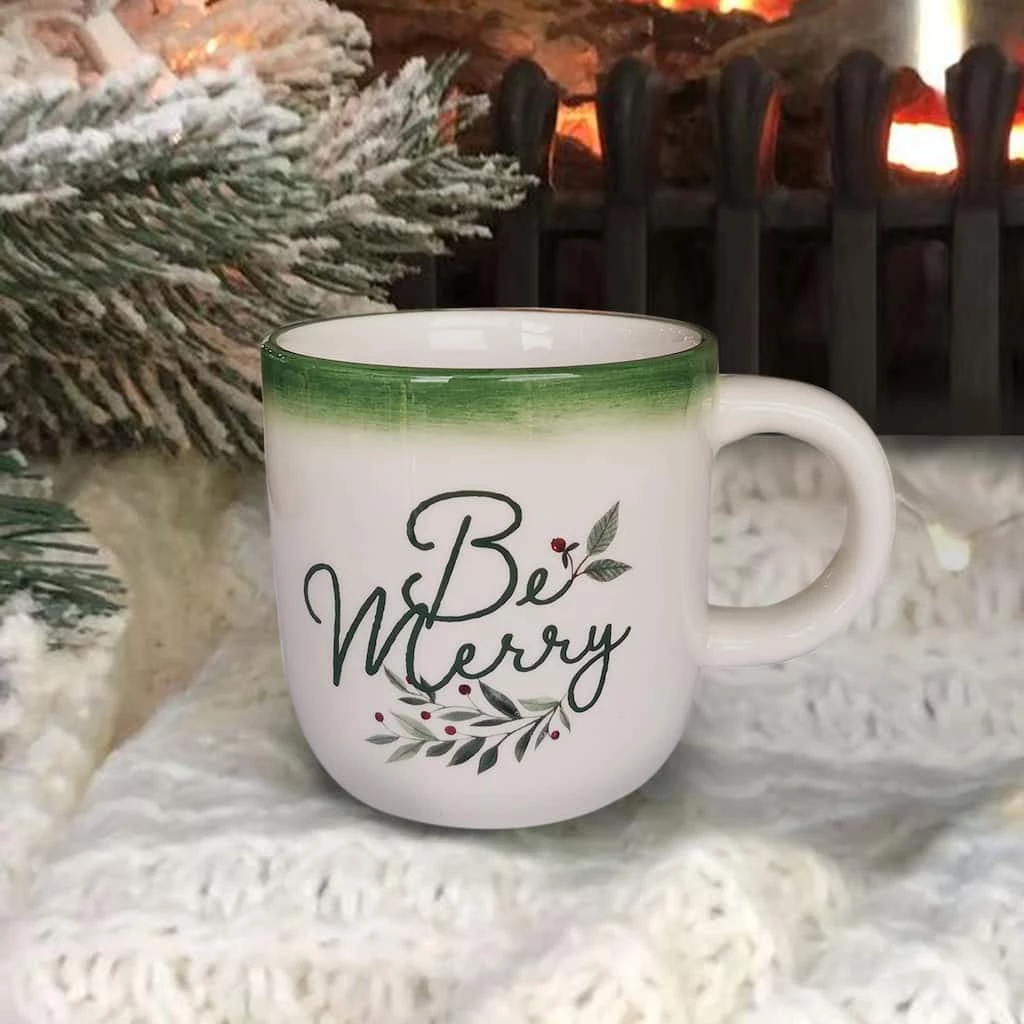 Enjoy a warm, a seasonal beverage in this festive “Be Merry” mug. It’s guaranteed to add a Christmas vibe to your home. Use it as an accent with other decorations to transform your bookshelf or counter.
