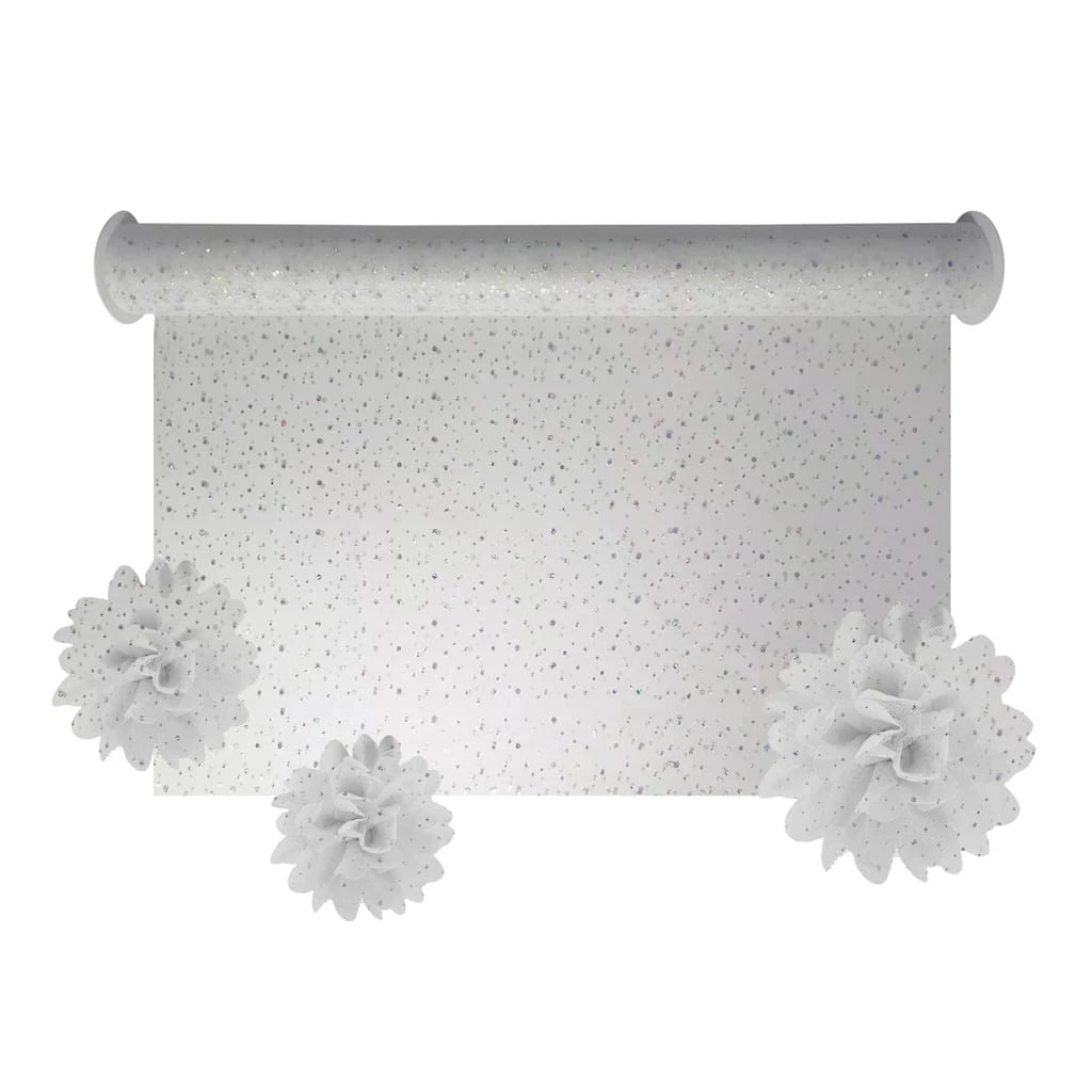 Add this tulle to your DIY décor projects. Perfect for wedding decorative accents or for your crafting needs, this lovely tulle features holographic dots, which brings a stylish touch to the material.