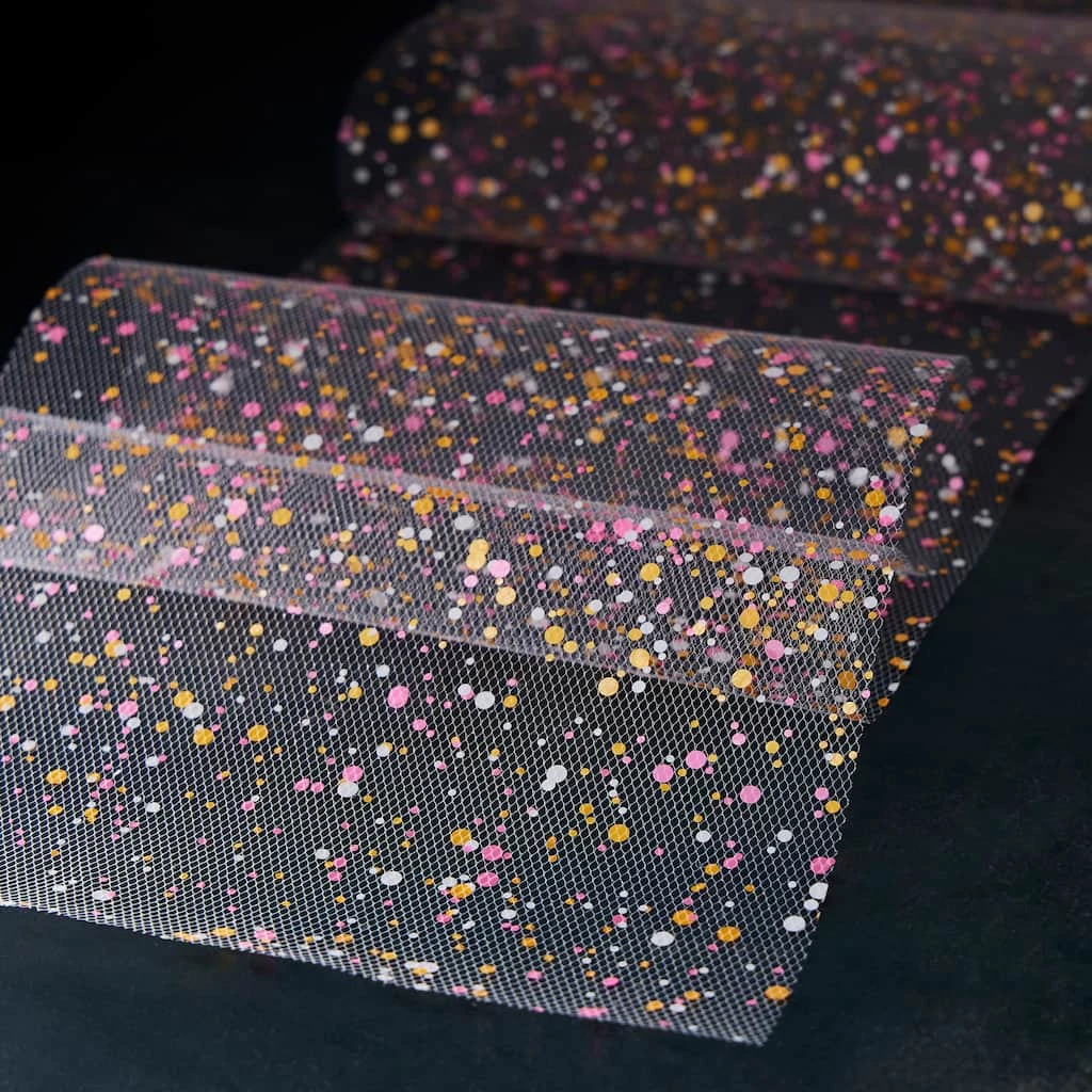 This lightweight versatile fabric is ideal for designing DIY event decorations, home décor, and much more. Featuring chunky glitter in neon pink and orange, this bright fabric will be a great addition to your summertime crafts.