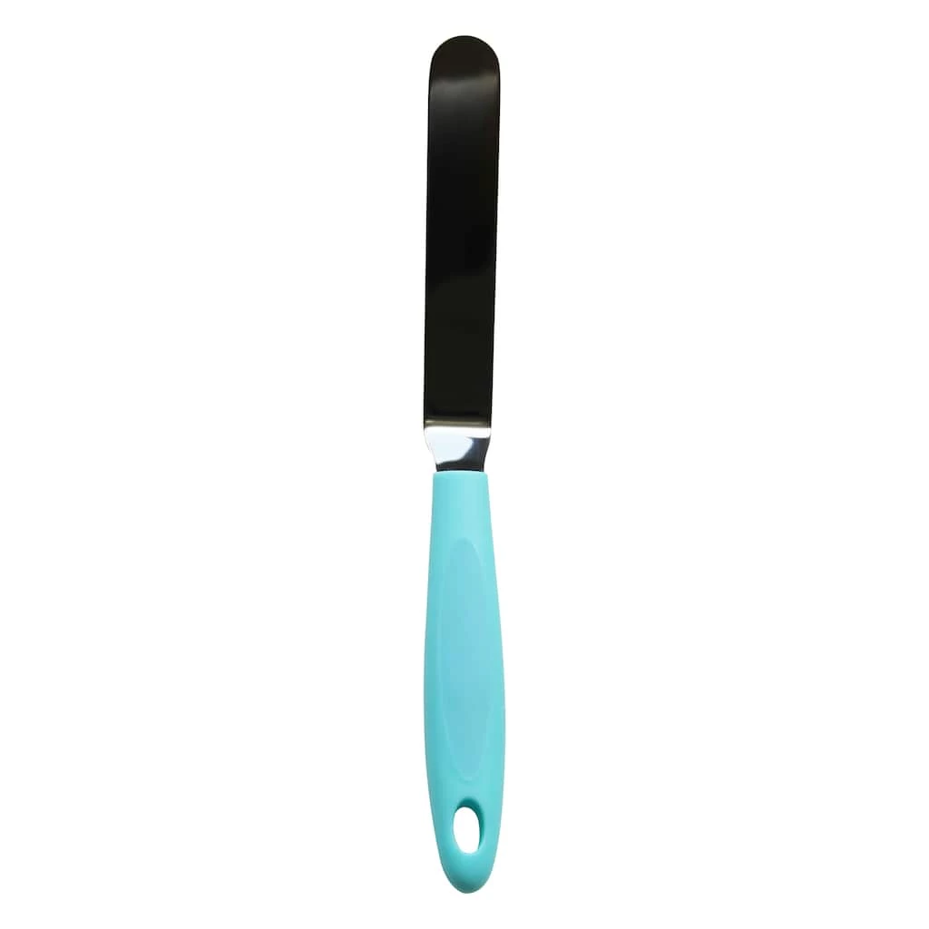 Use this angled blade spatula for smoothing icing on cakes or lifting cake decorations off your workspace and onto your cake. It has a curved handle that is better for control and comfort.