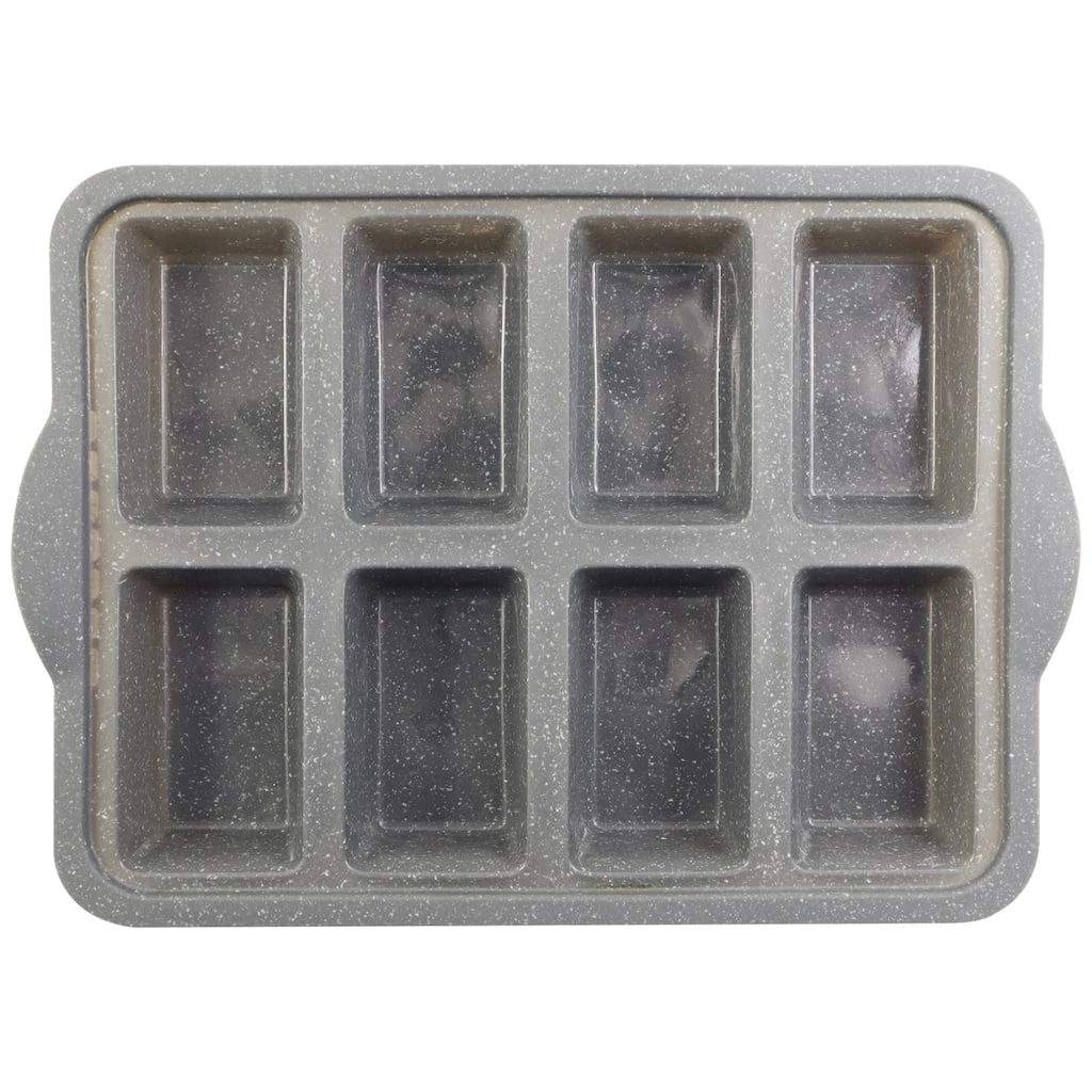 Bake delectable mini cake loafs with this unique baking pan. It features rigid steel around the outside for secure handling. Additionally, each cake cavity is comprised of silicone to allow cakes to pop out with ease!