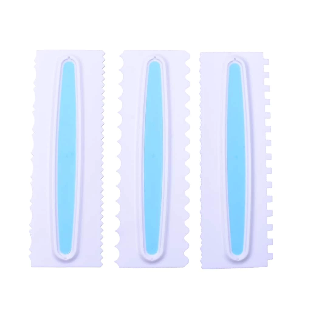 Add a professional finish to your buttercream-iced cakes. This set makes creating texture a breeze with six different designs, ridges, swirls and waves. The handgrip is specifically molded for a secure grasp, and it keeps fingers from dragging into cake sides.