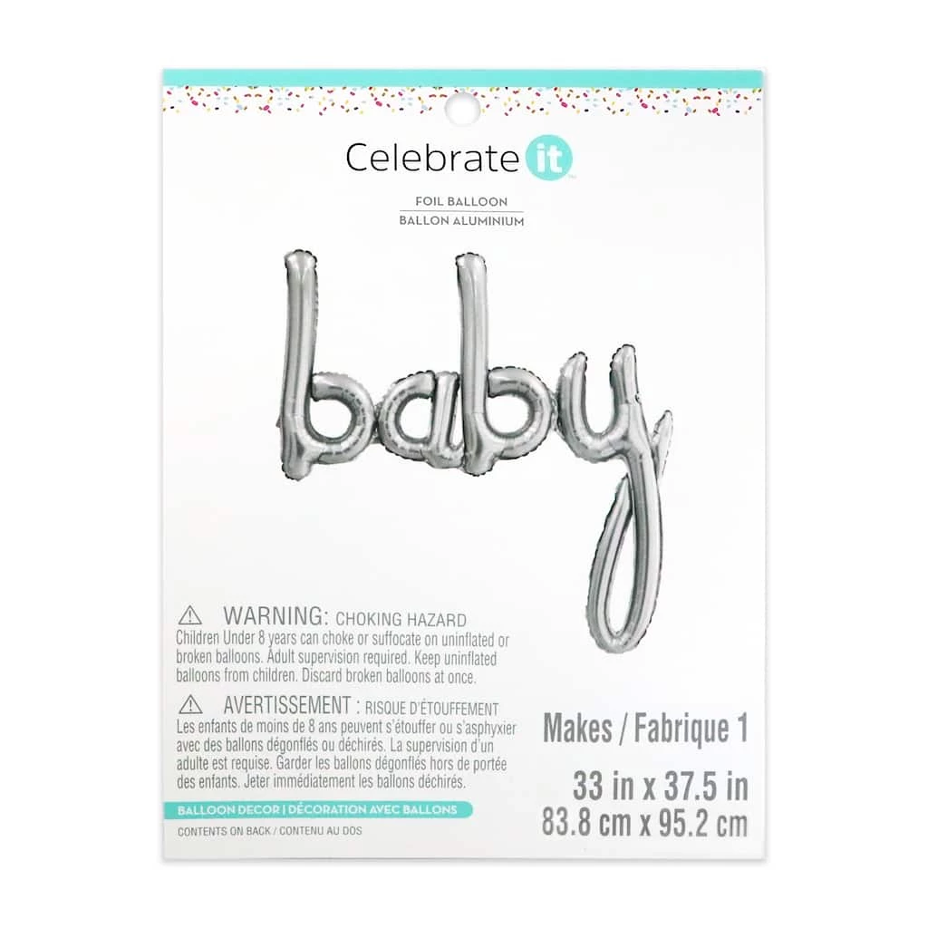 Enliven any baby shower with this whimsical “baby” foil balloon. Pair it with colorful balloons and other bright décor pieces for the perfect look.