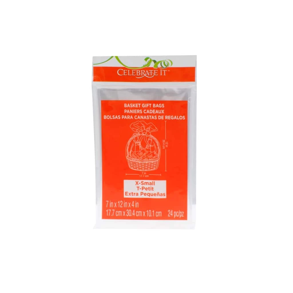 Specially designed to fit small baskets, this cellophane bag is perfect for wrapping and securing your homemade gift baskets. Simply place your basket in the bag, gather at the top and tie with a pretty ribbon or twist tie. Top off with a beautiful bow for a professional look every time.