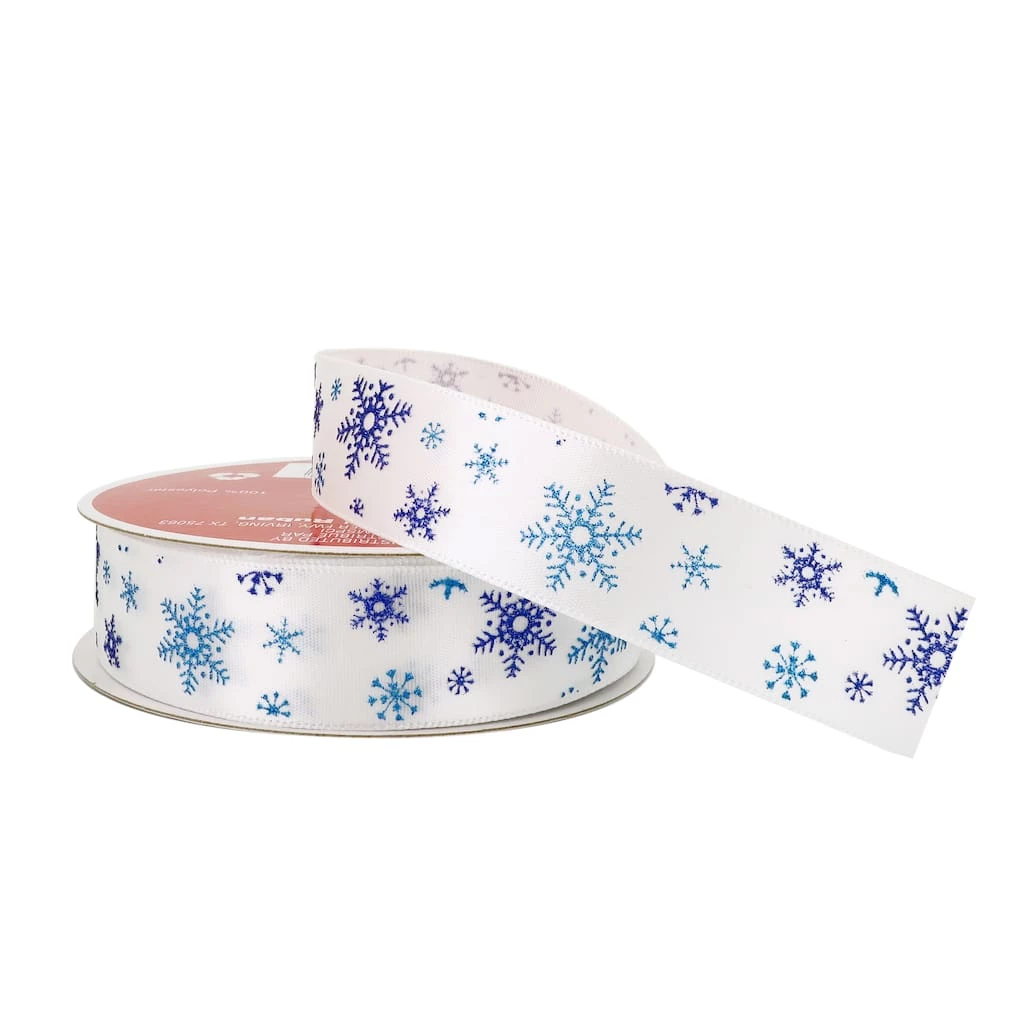 Give your Christmas gifts and craft projects a lovely bit of brightness with this satin snowflake ribbon from Celebrate It. Use to embellish ornaments, pair with lights and greenery to create festive garlands and wreaths, dress up floral arrangements, put the finishing touch on presents and more!