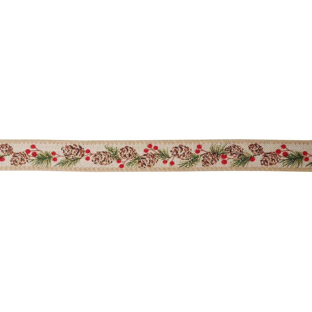This faux linen ribbon features a pinecone design and is perfect for adding a decorative touch to your gift wrapping or DIY projects. Accent gift boxes or handmade presents, this ribbon will be a great addition to your holiday crafting supplies.