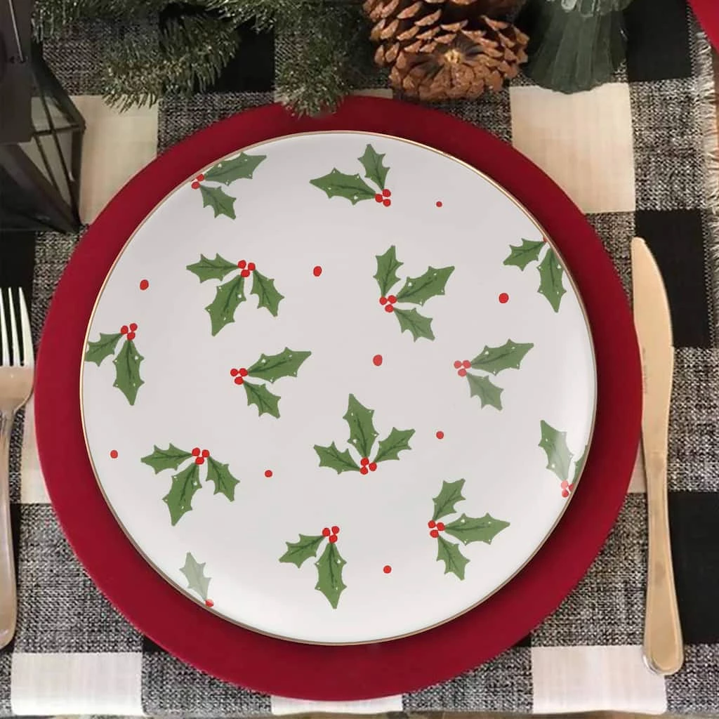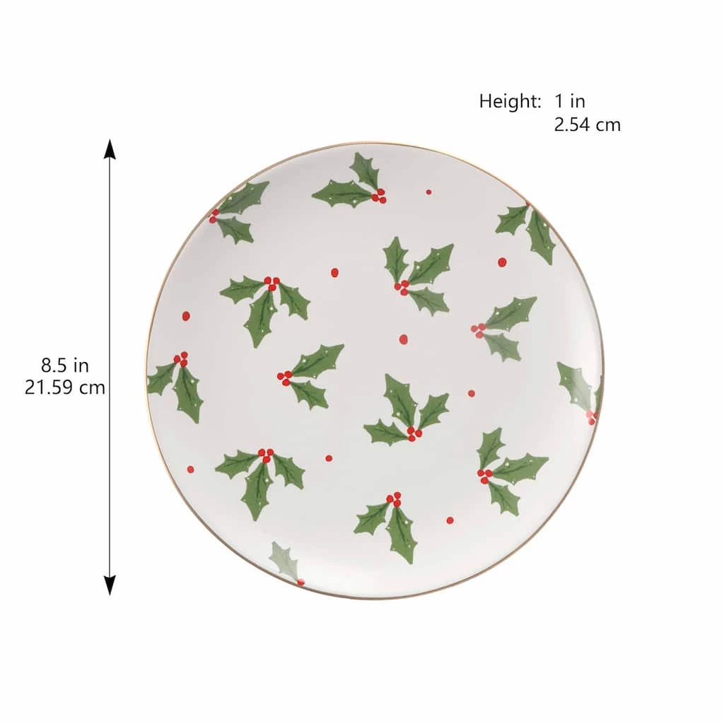 This Christmas mistletoe salad plate is perfect for lending your dining table décor a festive holiday touch. Pair it with a vibrant charger, linen napkins, and elegant flatware to complete the look.