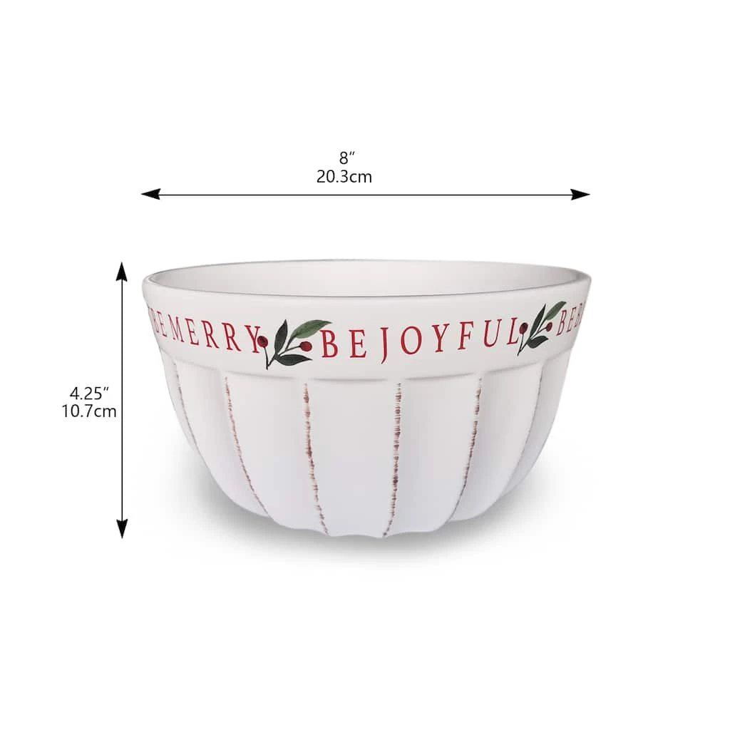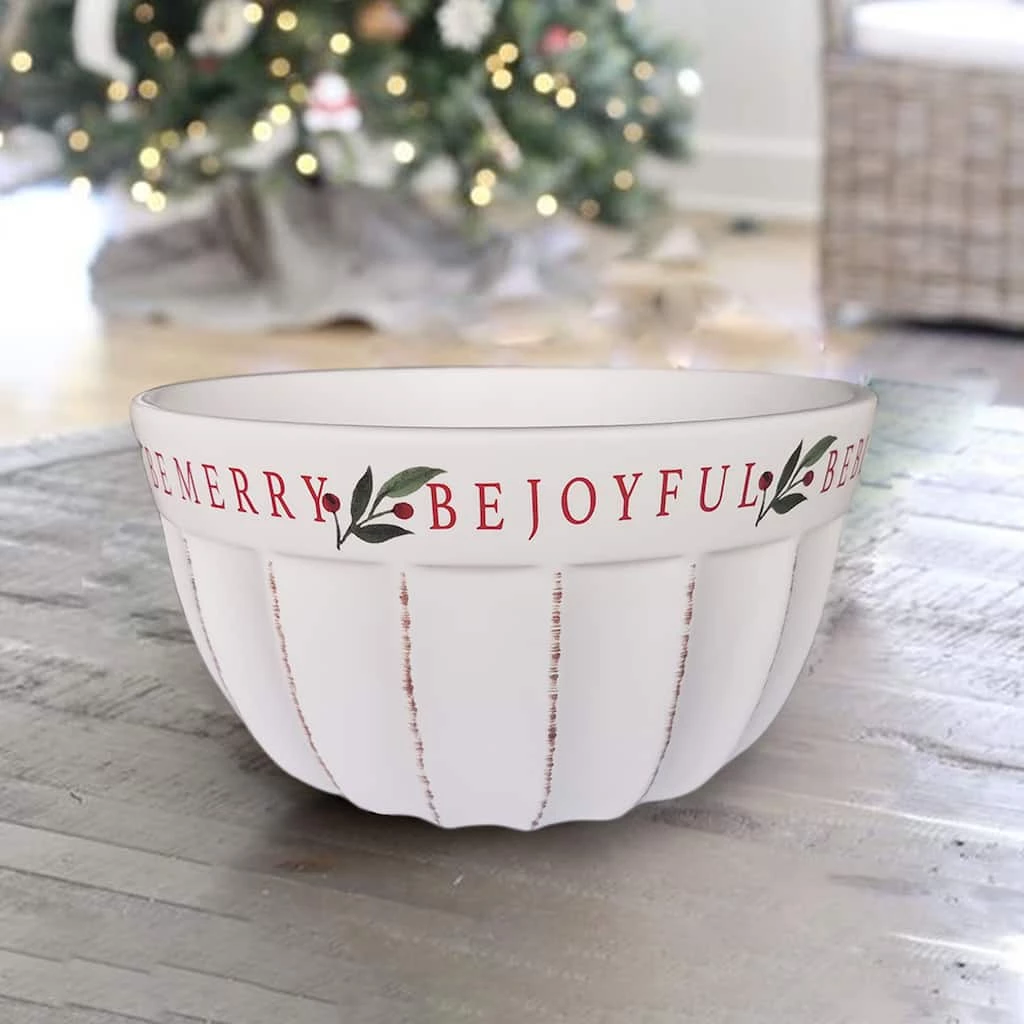 Give your holiday meal a charming flourish with this lovely ceramic bowl. This white dish featuring festive berry accents and the words “Be Blessed” and “Be Joyful” along the rim is a wonderful way to serve delicious party snacks and dinner sides to your friends and family as you celebrate the Christmas season together.