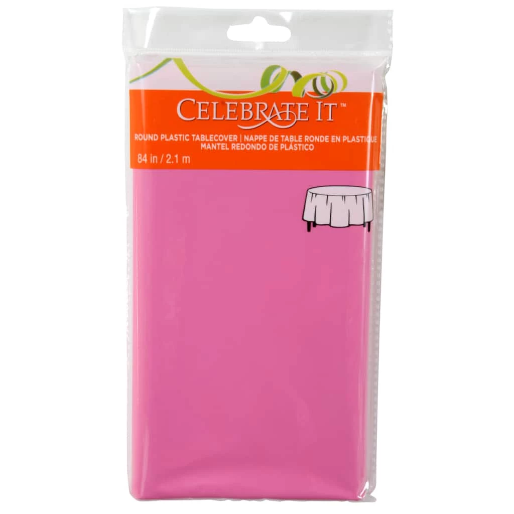 Outlet ✔️ 84″ Round Pink Plastic Table Cover by Celebrate It™ 😉