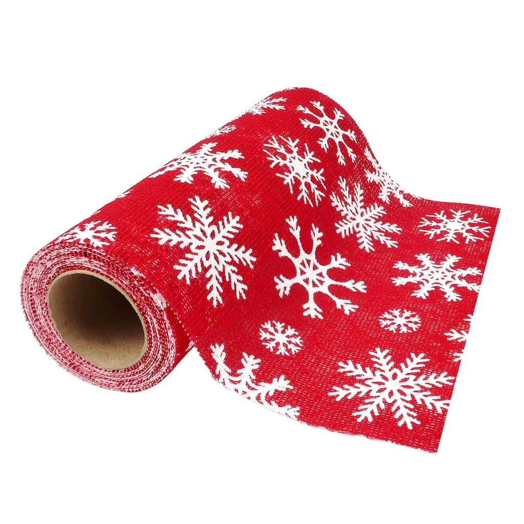 Give your Christmas crafts a lovely bit of rustic charm with this red faux burlap mesh with a snowflake pattern from Celebrate It. Use as is or add ornaments, lights and tinsel to create festive garlands and wreaths, embellish floral arrangements and presents or drape over the holiday tree!