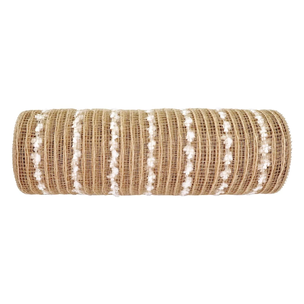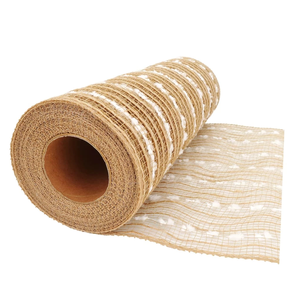 Give your Christmas crafts a lovely bit of rustic charm with this jute mesh with white snowball stripes from Celebrate It. Use as is or add ornaments, lights and tinsel to create festive garlands and wreaths, embellish floral arrangements and presents or drape over the holiday tree!