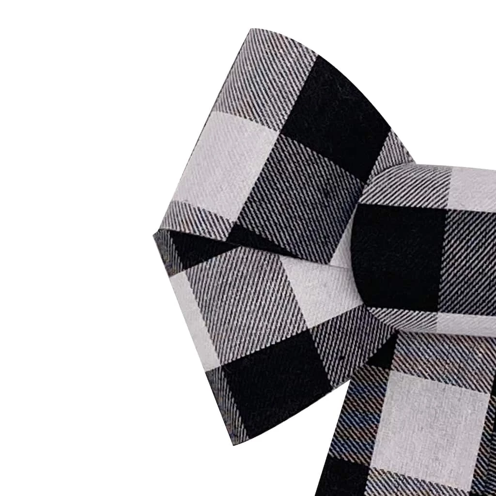 Give your holiday gifts and craft projects a lovely bit of country Christmas charm with this white and black checkered bow. Featuring fabric coated in PVC for durability, this charming bow is ideal for pairing with lights and greenery to create a festive garland or wreath, dressing up your tree, putting the finishing touch on a special present and more!