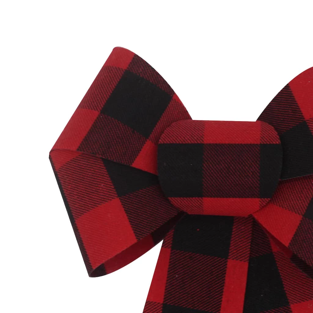 Give your holiday gifts and craft projects a lovely bit of country Christmas charm with this red and black checkered bow. Featuring fabric coated in PVC for durability, this charming bow is ideal for pairing with lights and greenery to create a festive garland or wreath, dressing up your tree, putting the finishing touch on a special present and more!