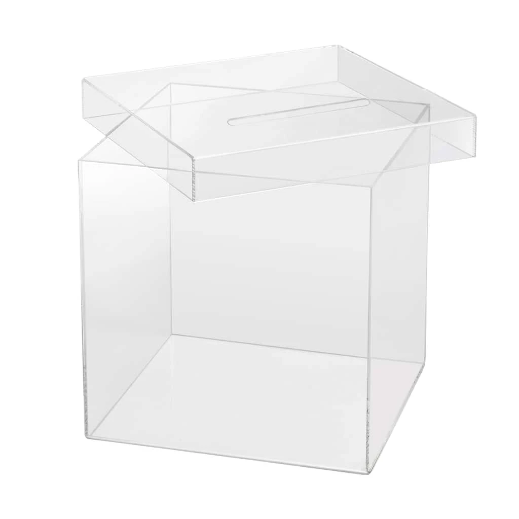Add this acrylic card box to your special occasion. Place it on a table so your guests can set their thoughtful cards safely inside.