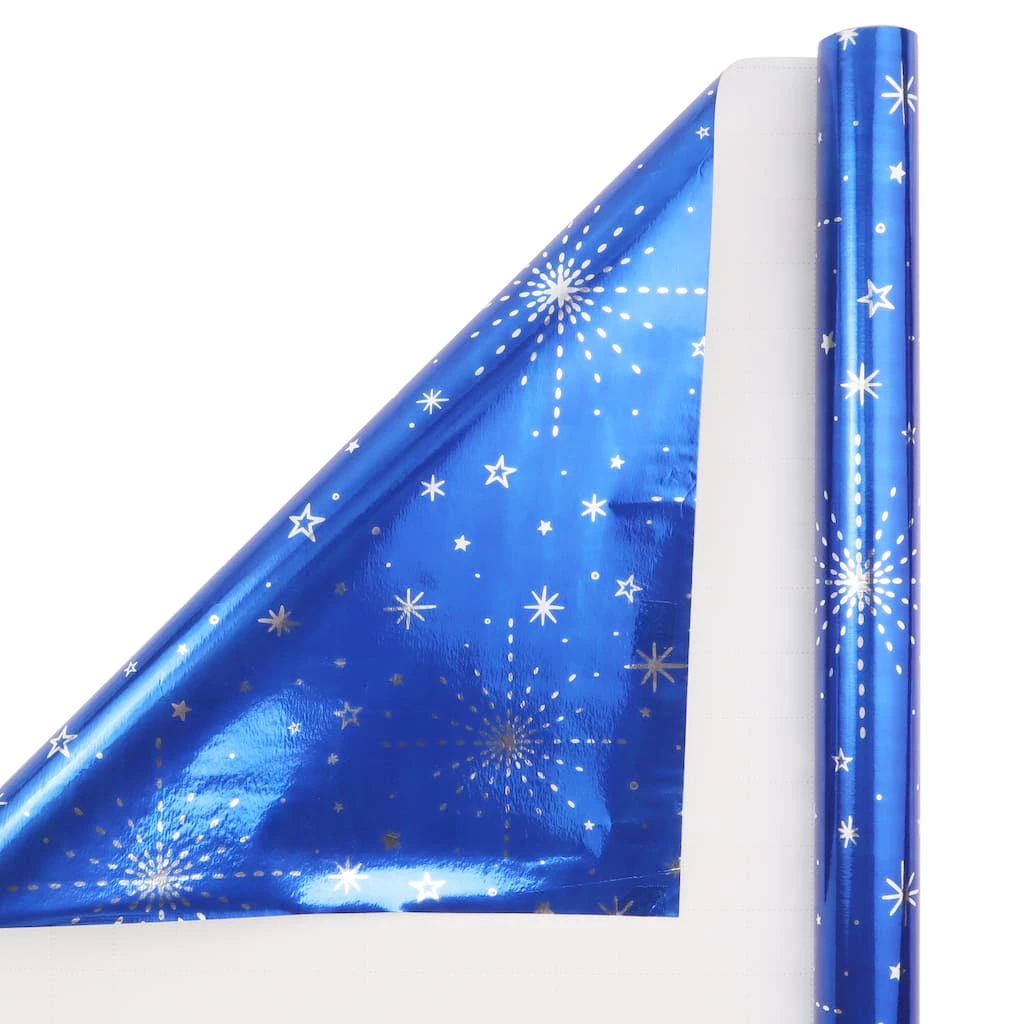 Featuring silver stars and a solid blue background, this charming wrapping paper is a fantastic way to dress up your holiday presents with flair. Pair it with shimmery ribbons and bows and add complementary tags for gifts sure to stand out as you celebrate this Christmas season with your loved ones.