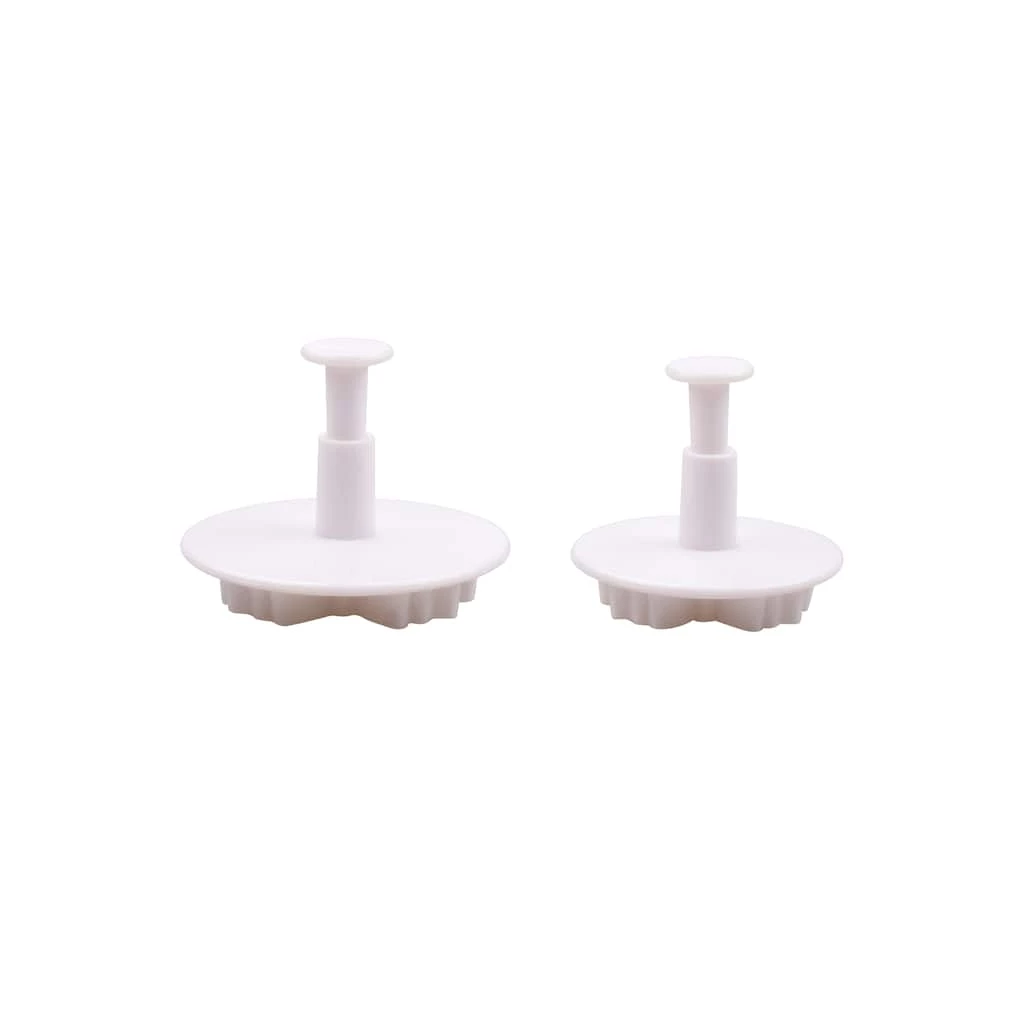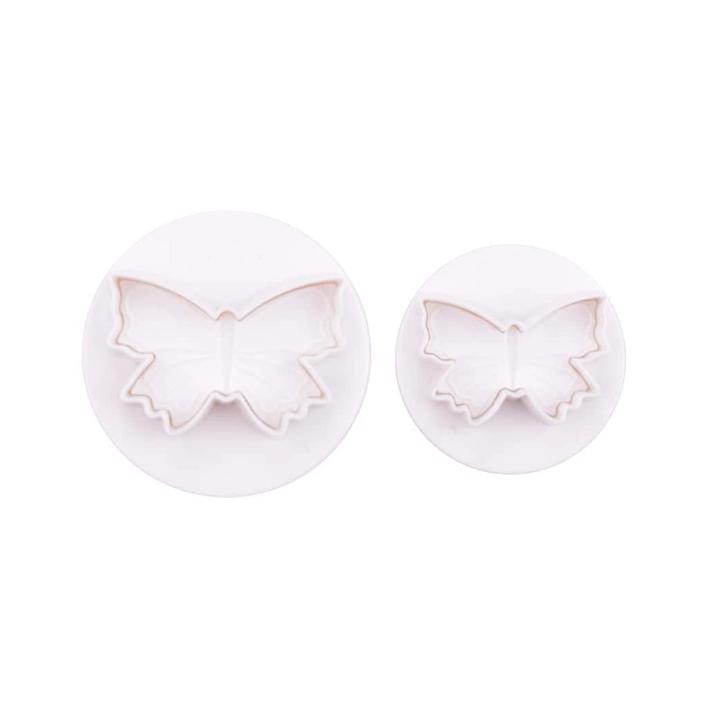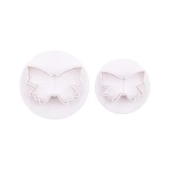 Cut and eject fondant shapes for cakes and treats. This package contains two cutters with butterfly designs.