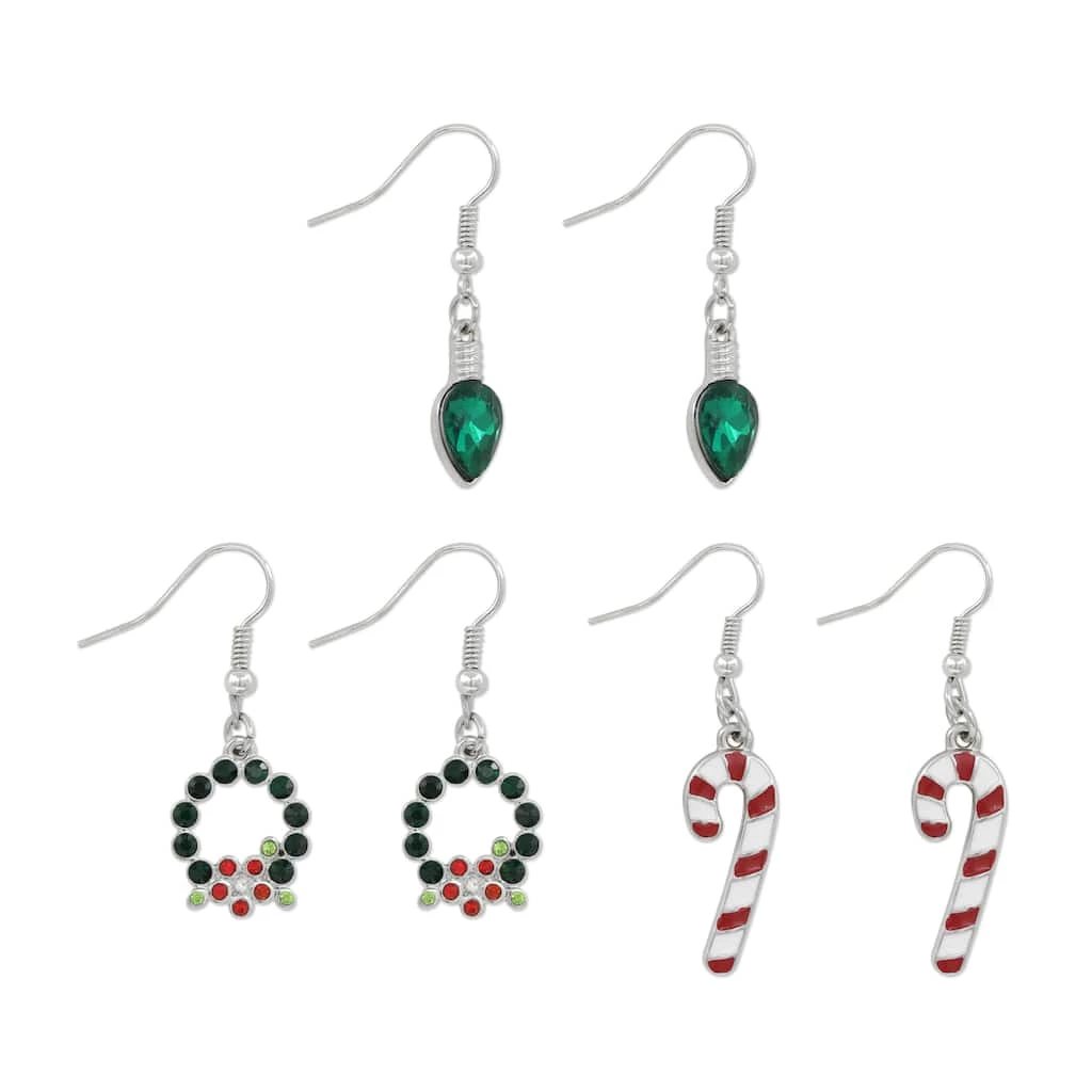 Bring a touch of festive flair to your holiday attire with these darling dangly earrings from Celebrate It. These lovely light bulb, wreath and candy cane earrings are a great way to show your Christmas spirit at school, the office and gatherings with friends and family.
