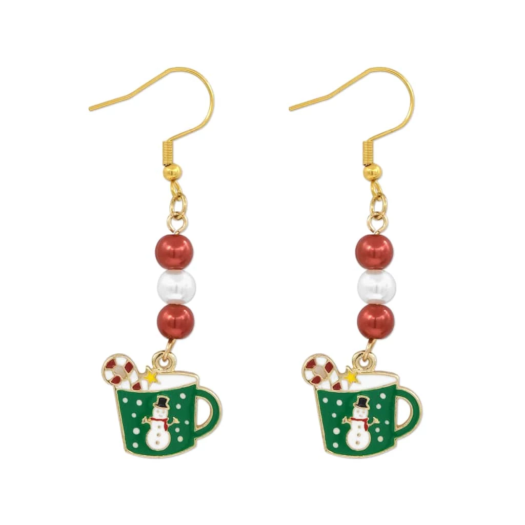 Bring a touch of festive flair to your holiday attire with these darling dangly earrings from Celebrate It. Featuring pearls and an enameled green snowman mug, these earrings are a great way to show your Christmas spirit at school, the office and gatherings with friends and family.
