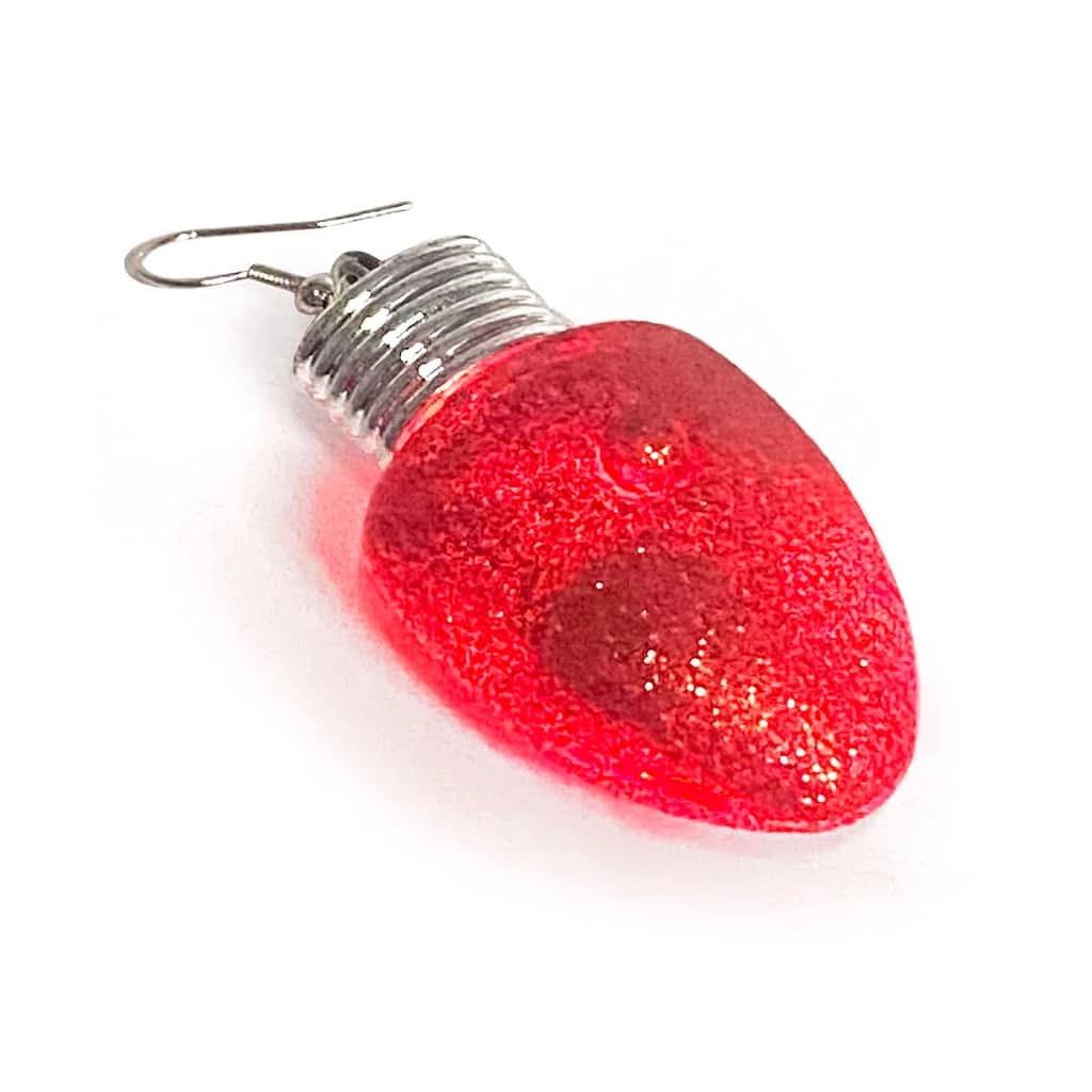 Bring a touch of festive flair to your holiday attire with these darling dangly light bulb earrings from Celebrate It. Featuring battery-operated lights and a sparkly red finish, these flashy earrings are a great way to show your Christmas spirit at school, the office and gatherings with friends and family.