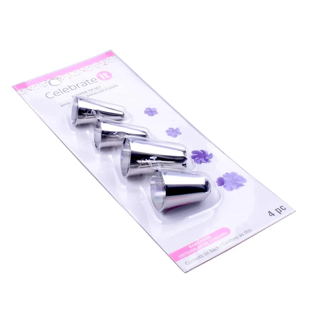 Decorate cakes, pastries and other treats quickly and easily using this Drop Flower Tip Set by Celebrate It®. Including tips of different sizes, this set makes a great addition to any baking enthusiast’s collection. You can also use all four tips together to create an attractive bouquet on your birthday or anniversary cake.
