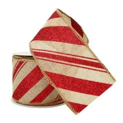 Discount 👏 2.5″ x 20ft. Faux Linen Wired Stripes Ribbon by Celebrate It™ ❄ Christmas ⭐