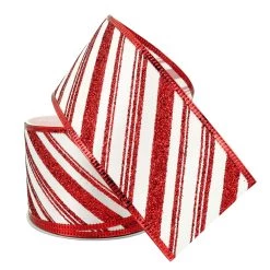Discount 🎉 2.5″ x 20ft. Taffeta Wired Slant Stripes Ribbon by Celebrate It™ 🔔 Christmas 🎁